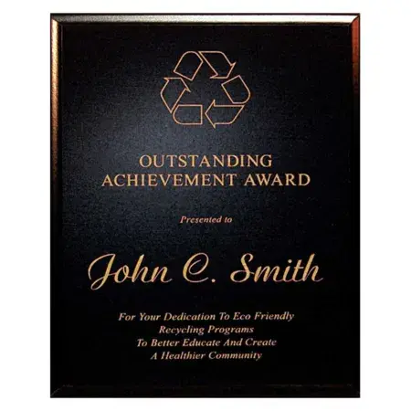 USA made eco conscious 8" x 10" plaque is made from sustainable bamboo and is perfect to hang on a wall. The sealer applied to the finished bamboo is hand-rubbed, boiled linseed oil, not a high-V.O.C. lacquer or varnish. Bamboo is a a rapidly renewable resource and biodegradable. Eco-friendly bamboo awards are perfect for recognizing sustainability achievements and milestones. Please note that bamboo patterns will be inconsistent with each piece being unique.