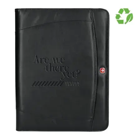 <p>Bonded leather portfolio is made fromscraps of genuineleather that would otherwise be thrown away.Includes a 30 page lined 8.5" x 11" writing pad, business card holder, elastic pen loop, inside flap pocket and mesh ID holder. Recycled leather padfoliosprovide a high end look while still being eco-friendly.</p><ul><li>Reusable</li><li><a href="https://ecopromotionsonline.com/tools/education-and-vocabulary">Prop. 65 Compliant</a></li><li>Sustainable Promotional Product</li></ul>