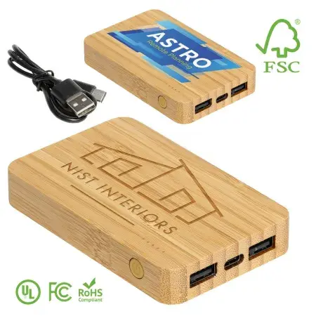 <p>Compact wireless charging power bank has a 5,000 mAh Lithium Polymer battery with a dual USBoutput. Both of the outputs are 5V/2A perfect for charging smartphones with a 5W wireless output. Branded mobile charger features a power level indicator lightsto show how much power isleft in the power bank. Includes a USB to Micro USB connection cable which can charge the battery backup or be used to charge up devices with a Micro USB input. Battery: 5000mAh/3.7V 18.5Wh. Packaged in a recyclable FSC brown box with instructions.</p><ul><li>Rechargeable</li><li><a href="https://ecopromotionsonline.com/tools/education-and-vocabulary">RoHS Compliant</a>,UN38.3,MSDS</li><li><a href="https://ecopromotionsonline.com/tools/education-and-vocabulary">FCCCert… href="https://ecopromotionsonline.com/tools/education-and-vocabulary">UL Certified </a></li><li><a href="https://ecopromotionsonline.com/tools/education-and-vocabulary">Prop. 65 Compliant</a></li><li>Eco-friendly Promo </li><li>Sustainable Promotional Product</li></ul>