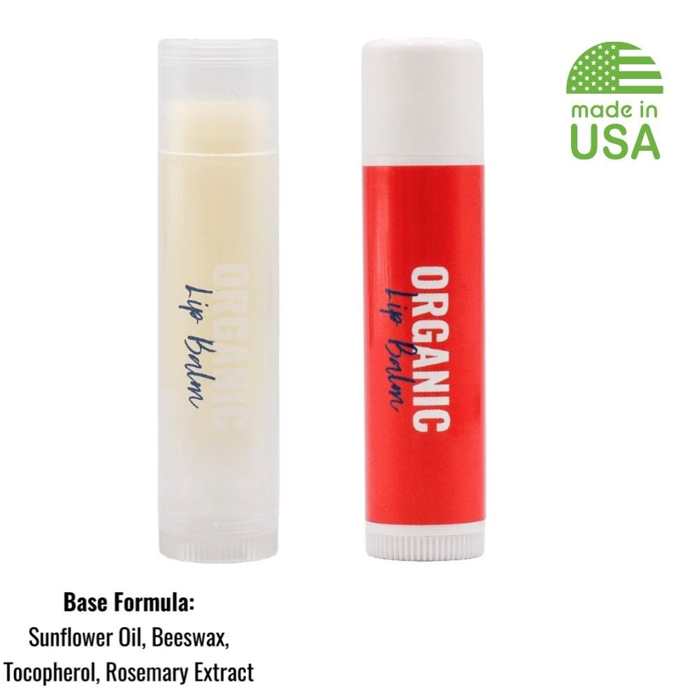 Made in the USA this nourishing organic lip balm formula is made from a soothing blend of high quality, nutrient rich organic ingredients. Contains no sunscreen chemicals. Made of 95% organic ingredients, including beeswax and sunflower oil. Perfect for outdoor events as well as tradeshows and meetings in sunny climates.Product available with the "USDA ORGANIC" seal -- see PRGANIC-L.