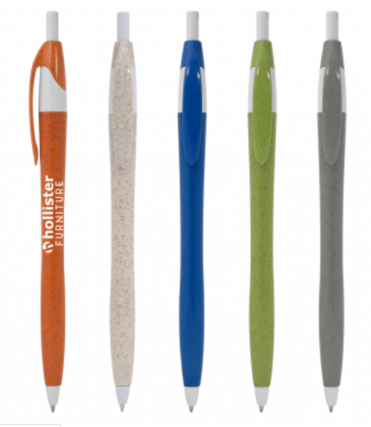 Plant fiberDart Clicker Pen is made from wheat straw and plant fiber polypropylene.Composed of reclaimed stalks from wheat and plant fibers. Made with small amounts of plant based material to create flecked finish. Black ink, medium point. Speckles vary from pen to pen and may show lighter on darker colors. Please note that assorted colors must be ordered in increments of 50.Testing documents coming soon.