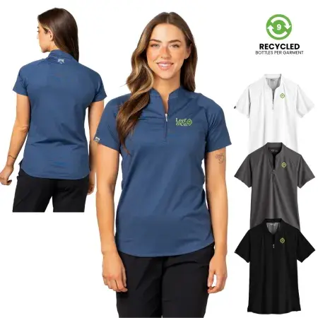 Look good and stay cool in this recycled polo shirt. Featuring side vents for breathability, a tailored collar with neck band, hemmed sleeves, and three color contrasting buttons. Its eco-friendly fabric is produced from at least sixteen recycled water bottles per shirt. This customizable recycled shirt is perfect for business or casual. Through a partnership with 1% For The Planet one percent of sales of this product will be donated to nonprofits dedicated to protecting the planet. A sewout will be produced and an image will be emailed for approval before moving into production. Wash inside out to prevent pilling. Please note that red is a seasonal color, check inventory before placing an order.