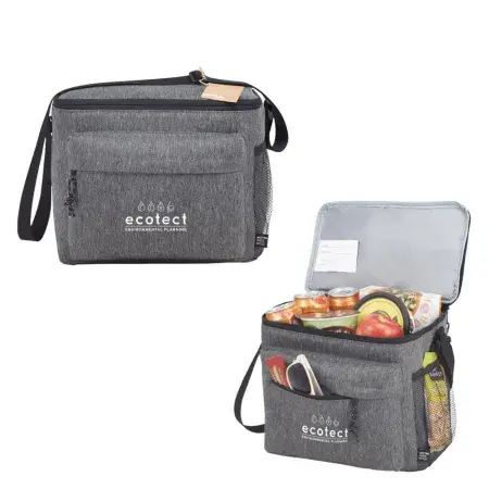 Say no to single use plastic bags and bring lunch or snacks on the go with our recycled snack pouch. Interior fabric is made with food safe and chlorine free PEVA lining so you can store snacks or treats in the foldable pouch to keep them safe in transport. Exterior is made from 100% post-consumer recycled polyester. Custom snack pouch is microwaveable up to 230° F to heat up your lunch with ease. Secure your snacks with the hook and loop closure on the top flap. A perfect sustainable promotional product for schools, offices and corporate lunch settings. Hand wash only.