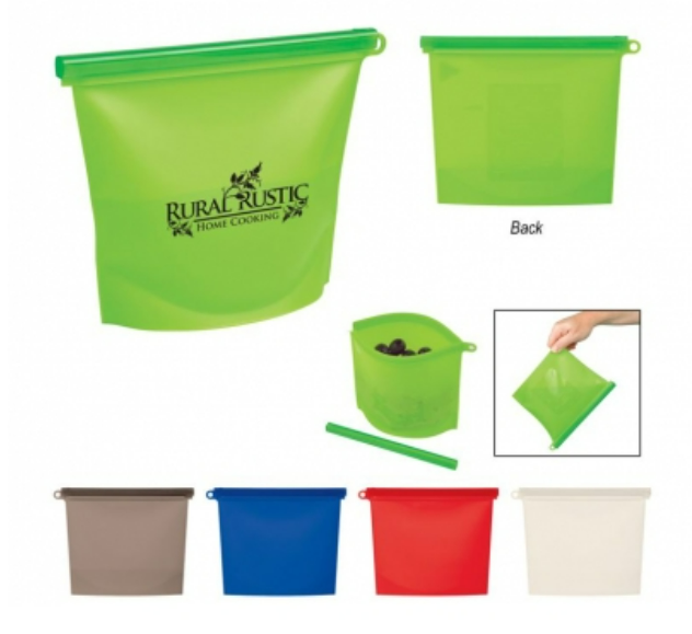 Reusable food bag with plastic slider is made from durable silicone. Holds up to four cups of dry or liquid contents and has aconvenient loop for hanging. Hand wash recommended. Meets FDA Requirements. As for the end of life cycle, silicone can be recycled but only at a specific plant. We have a resource partner, ECO USA, that takes those products, heats them up, puts it through a filtration and refinement process to produce recycle-grade silicone fluid which can then be reused by other companies.