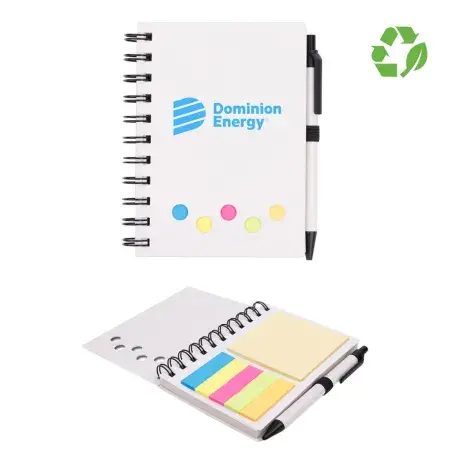 This USA Made recycled notebook has a cover made of natural 22 pt. chipboard and 40 sheets of offset white paper. Both the cover and pages are made from 100% post-consumer content. Includes a one-color foil stamped imprint on the front cover. Featuring a recycled symbol printed on the lower right corner of the pages in light gray soy ink and top binding with recycled wire. 100% recycled notebook!
