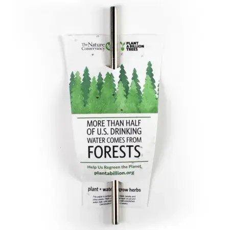 Spread awareness for conservation with our Conservation Awareness Seeded Plantable Shapes. Comes with a 100%-recycled info card and a handmade plantable seed paper shape, packaged together in a corn-based cello bag. This is a durable, cost-effective and impactful green promotion! The 3" x 4" info card leaves a large imprint area for your custom message. Customizing is easy with stock designs for all occasions, just send your event details and we'll do the rest. Our seed paper is handmade from 100%-recycled material and embedded with a hardy mixture of annual and perennial wildflower seeds. Available in amazing sustainable shapes such as flowers, trees, recycle symbol, dollar sign, states and many more. A great promotional item for Earth Day, tradeshows, outdoor events and more!